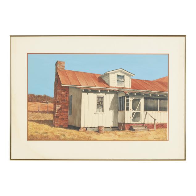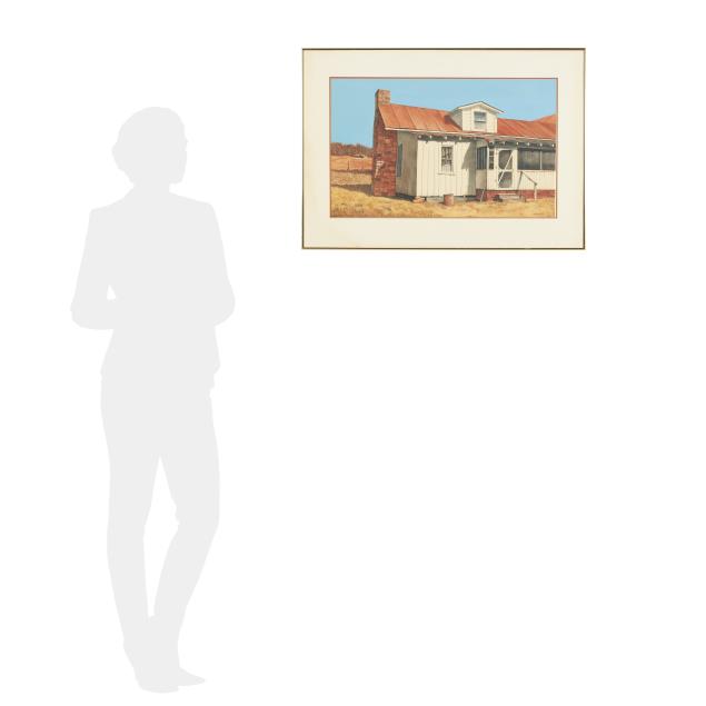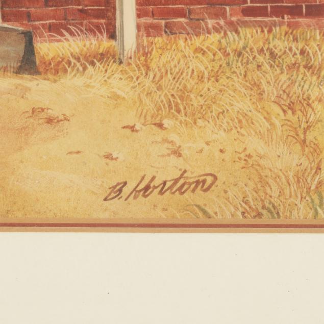 Watercolor and gouache on paper, signed at lower right, matted and framed below glass.