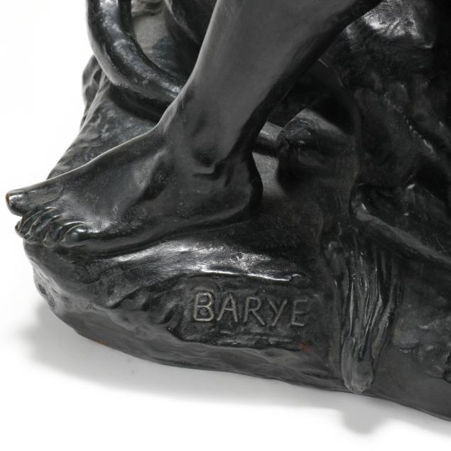 Conceived circa 1854-1855, cast by Ferdinand Barbidienne, patinated bronze, signed "BARYE" to the base with foundry mark "F. BARBEDIENNE FOUNDER", ink numbered to the underside.