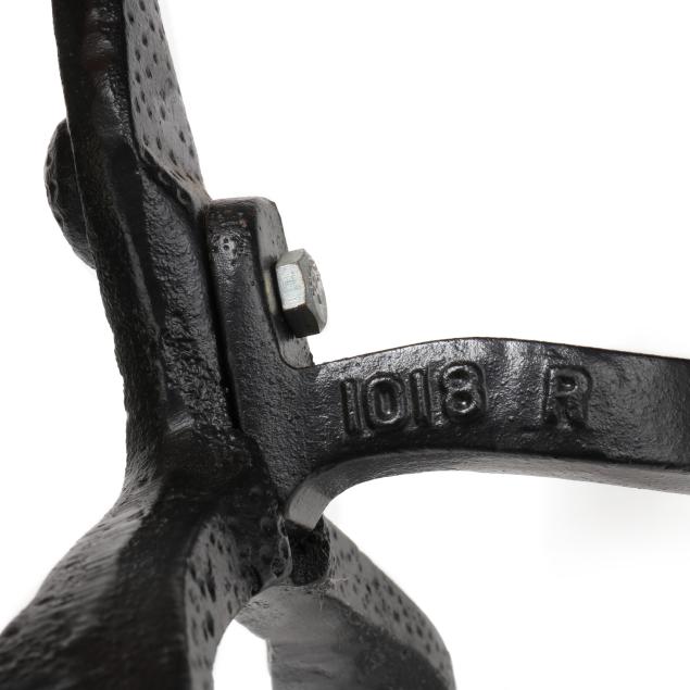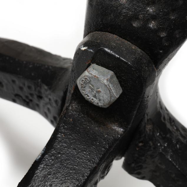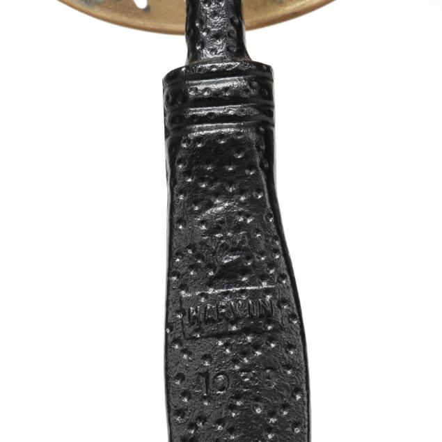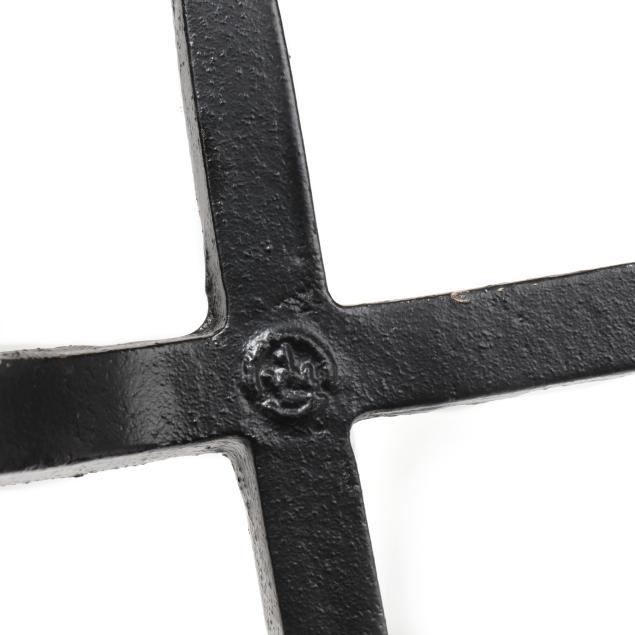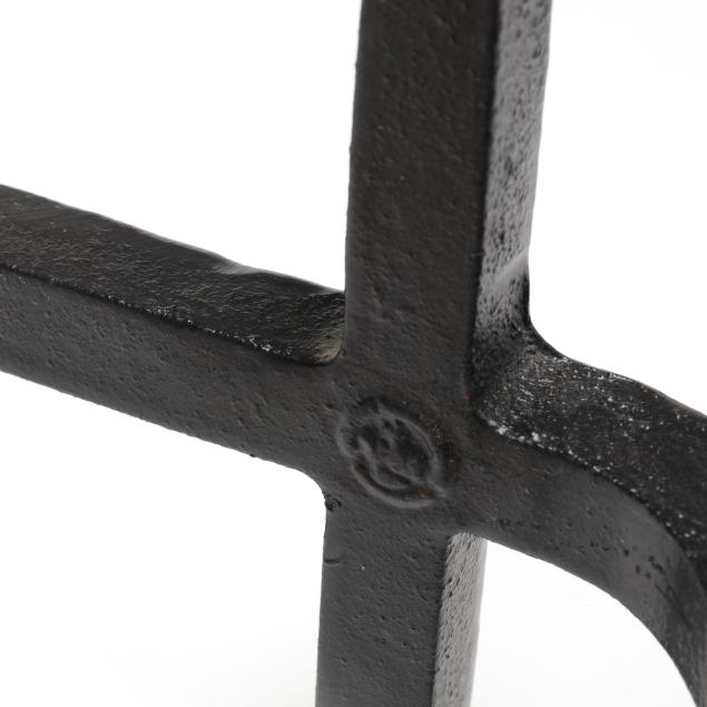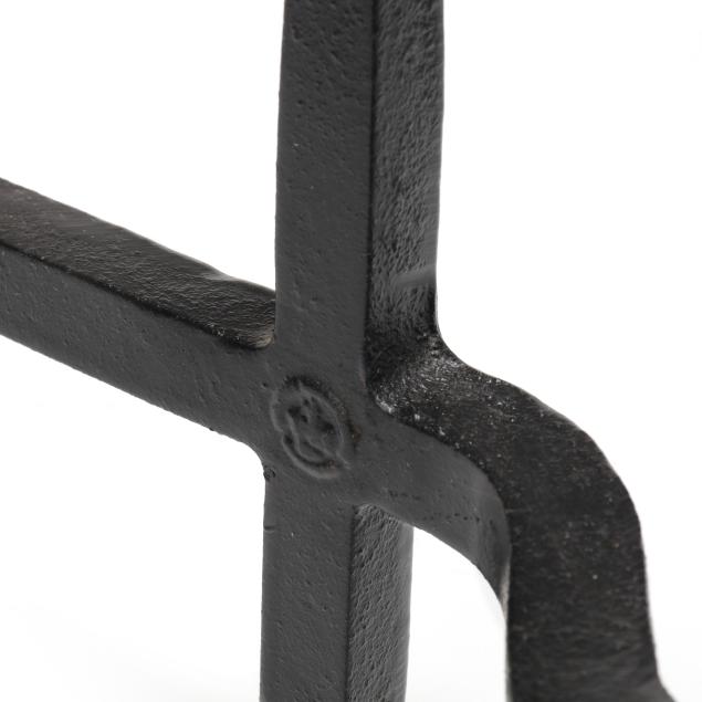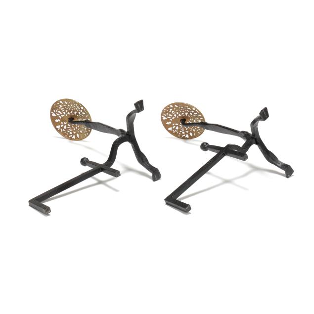 Mid-20th century, pierced and cased brass rondells mounted to hammered iron supports, marked.