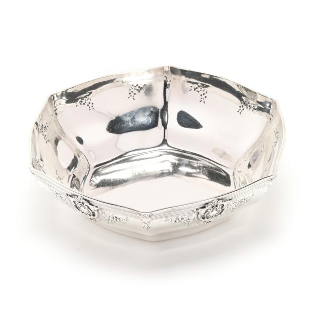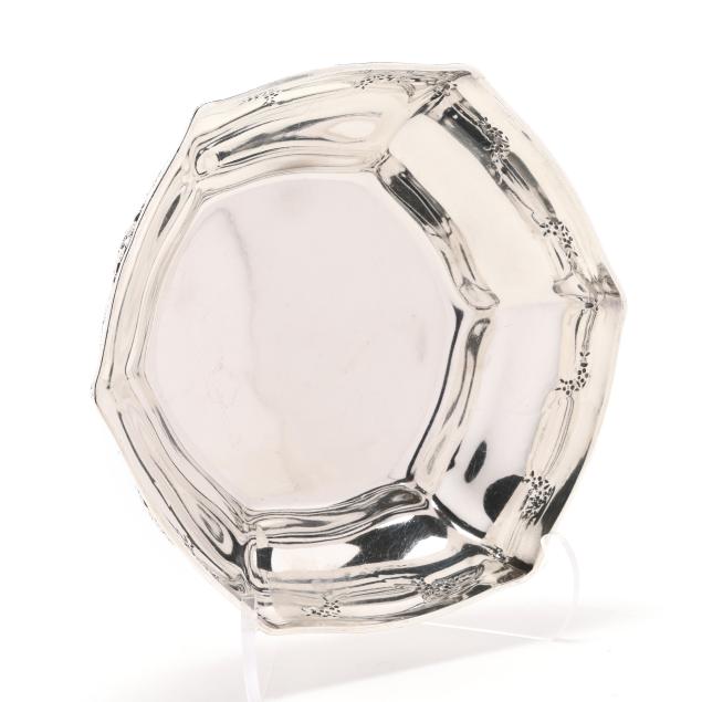 Period mark circa 1907-1947, directorship of John C. Moore II, pattern number 18165, hexagonal form with rocaille motifs to the rim, not monogrammed.