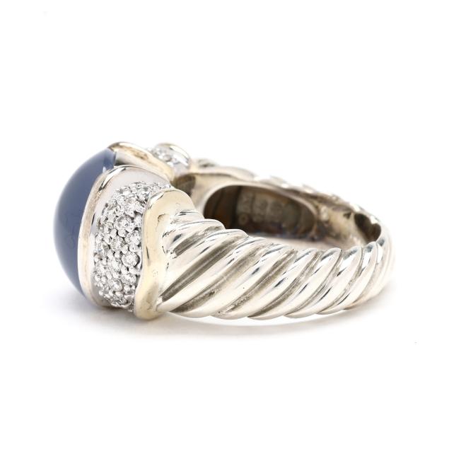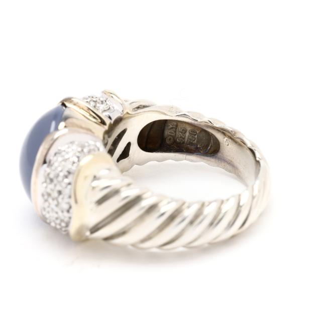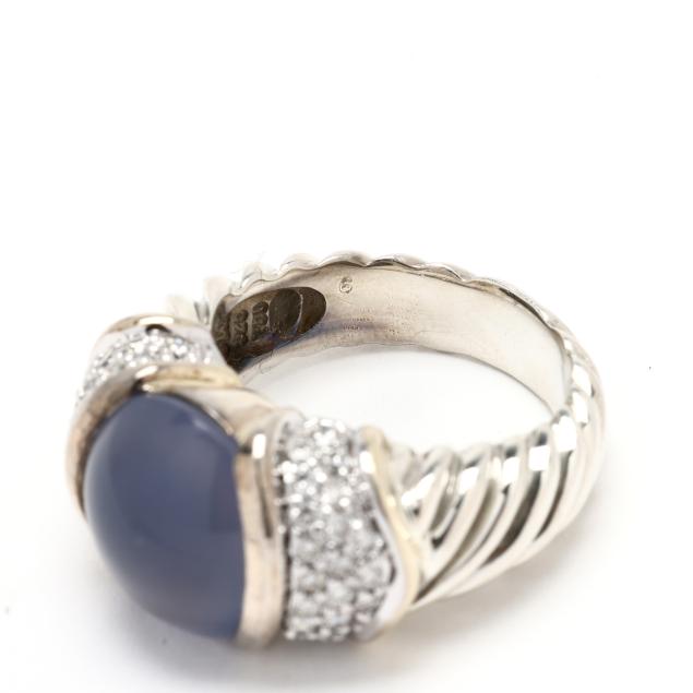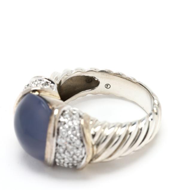Sterling Silver, Gold, Chalcedony, and Diamond Ring, David Yurman