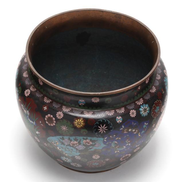 A Wide Mouth Japanese Cloisonné Jar with Medallions