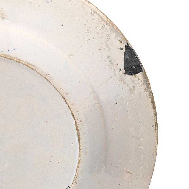 Some scattered glaze chips and fritting; One soup plate with cracks and restoration, another with hairline and area of restoration to the reverse edge.