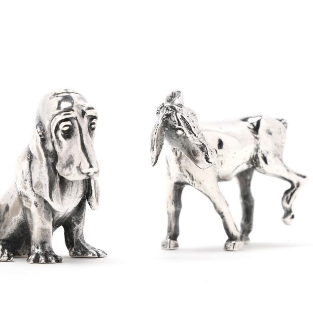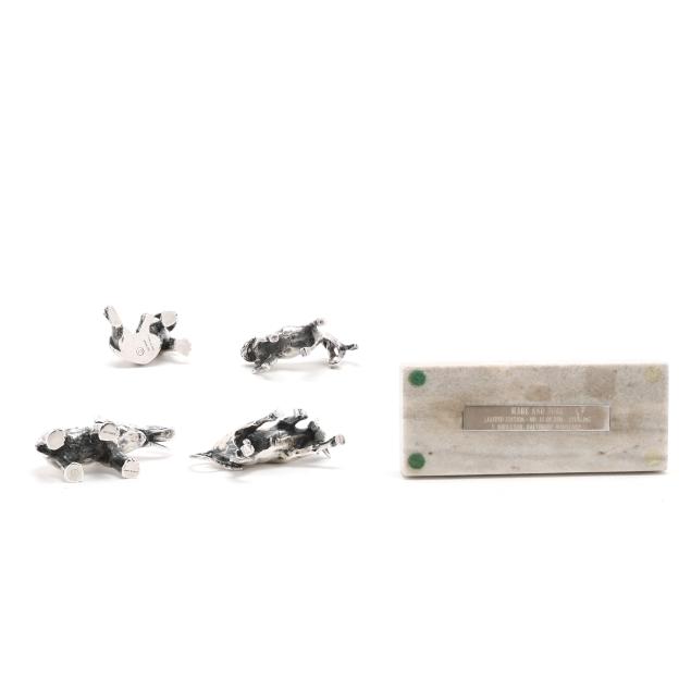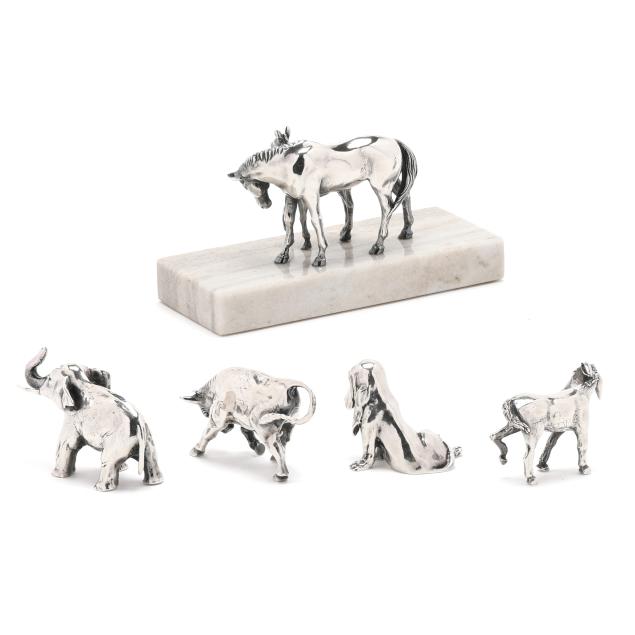 Mare and Foal, a limited edition numbered 18/250, mounted to a quartz base; a seated basset hound; an elephant; a donkey; and a bull; all marked, not monogrammed.