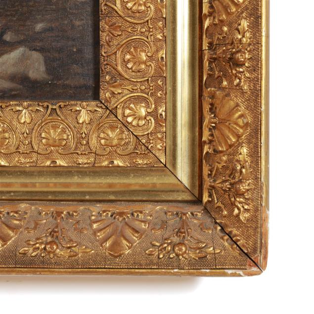 Oil on canvas, signed at lower left, presented in a period gilt composition frame.