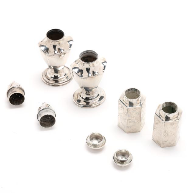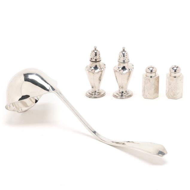four-sterling-silver-salt-pepper-shakers-and-a-punch-ladle