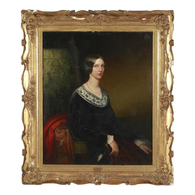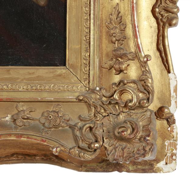 Oil on canvas, signed at lower left, presented in a period gilt composition frame.