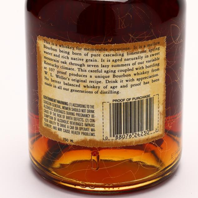 NV, Old Weller Antique Original 107 Brand Kentucky Straight Bourbon Whiskey, 7 Years Old, W.L. Weller & Sons, Frankfort, KY, 53.5%, 1995 bottling, into neck, sealed in gold-veined squat bottle (1 750 ml)