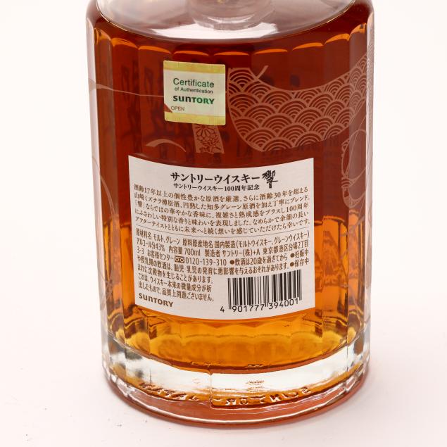 NV, Hibiki 100th Anniversary Suntory Japanese Whisky, Anniversary Blend, 43%, limited 2023 release, made for the Japanese market, htms, sealed glass decanter, owc (1 700 ml)