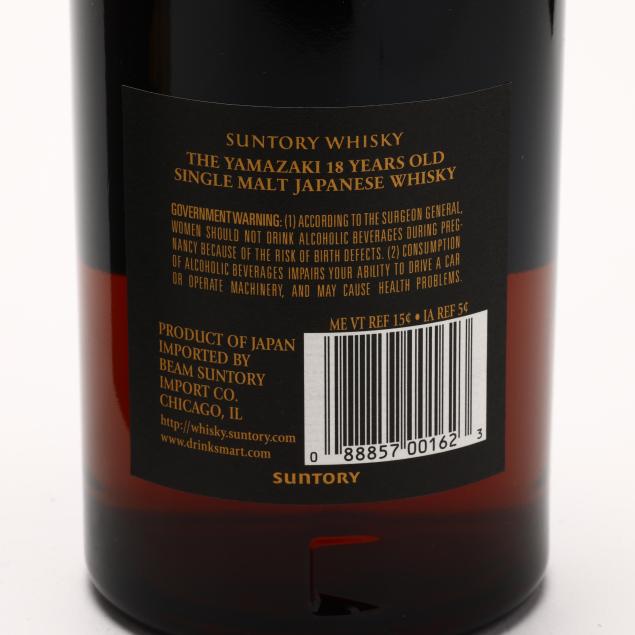 NV, The Yamazaki Single Malt Japanese Whisky, Aged 18 Years, Suntory, 43%, into neck, sealed, ocb (1 750 ml)