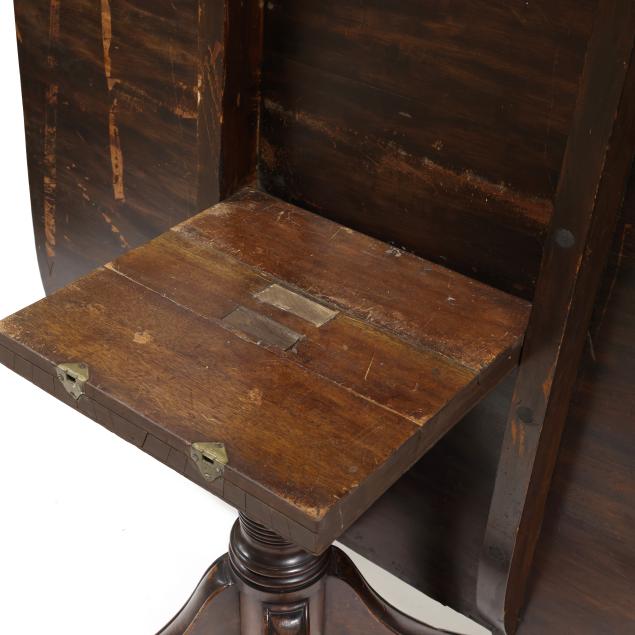 From the Estate of the late Jeanette M. Tinkham, Norfolk, Virginia Battens reset; one batten with slight separation to top; later screws; plinth block at top of standard later; wear to legs and ankles.