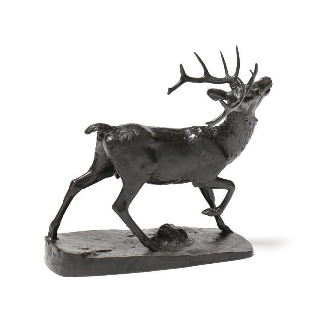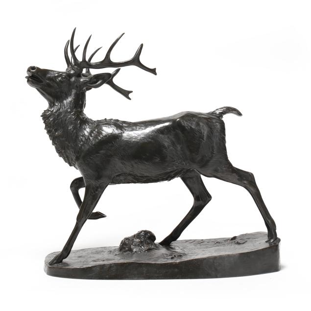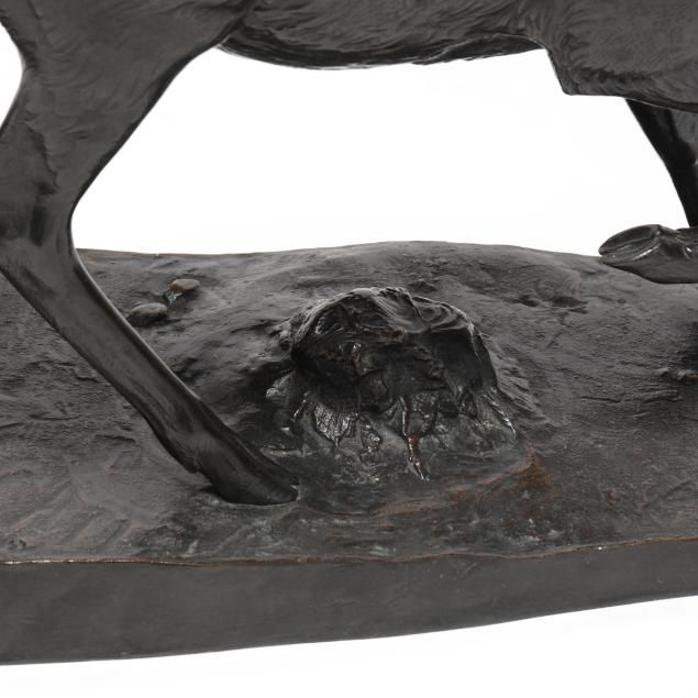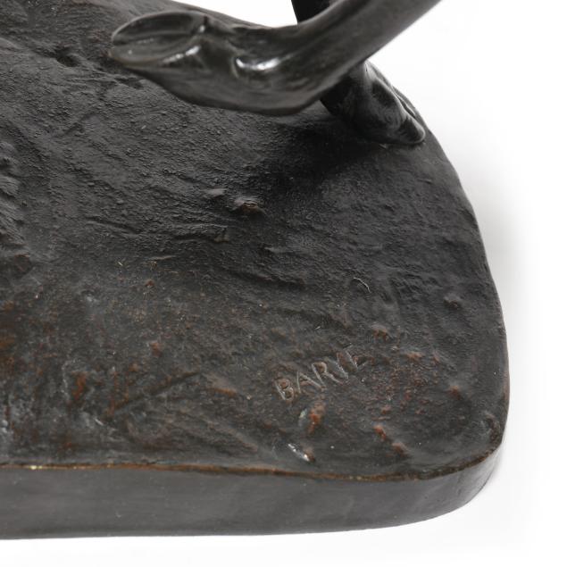 Conceived 1829, exclusively cast by the Susse Freres foundry, patinated bronze, signed "BARYE" to the naturalistic terrace with company foundry stamp.