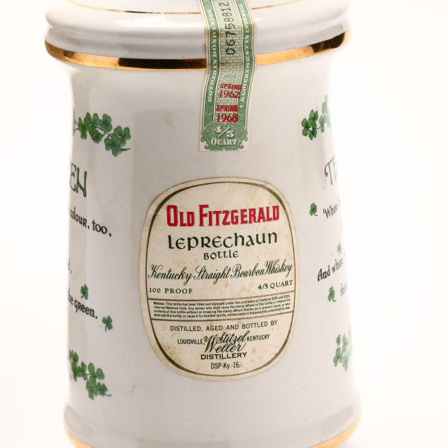 NV, Old Fitzgerald Kentucky Straight Bourbon Whiskey, Bottled in Bond, Stitzel Weller Distillery, Lousiville, KY, 50%, distilled spring 1962, bottled spring 1968, full bottle (61.16oz), sealed in Leprechaun porcelain decanter, ocb (1 4/5 Quart)