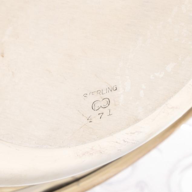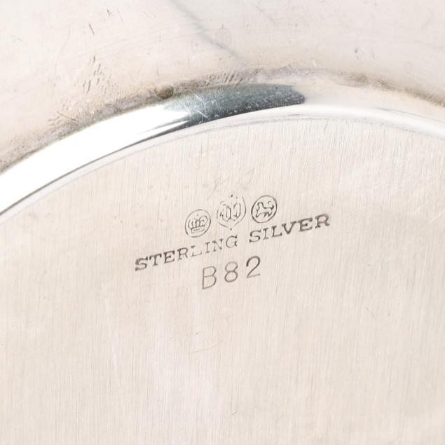 20th century, various makers including Wallace and Richard Dimes, one featuring gadrooning to the rim; (2) monogrammed.