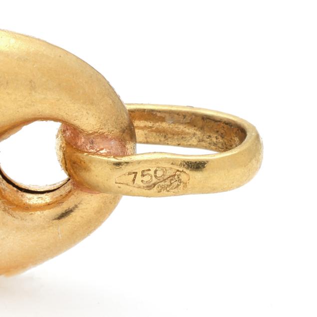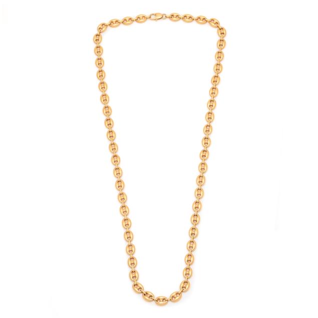 The gold mariner link chain completed with a lobster clasp, stamped 750 and with Italian registry mark 84 AR for Borgogni.