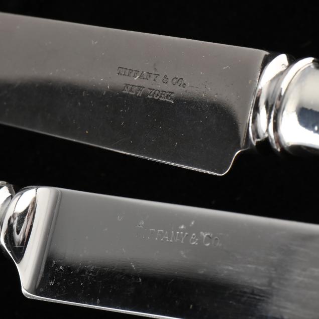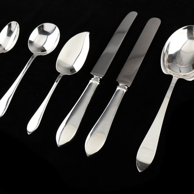 (21) pieces to include: (8) dinner knives (10 1/8 in.); (8) dinner knives (10 1/4 in.); a serving spoon; a jelly spoon; a sugar spoon; a round bowl soup spoon; and a teaspoon; not monogrammed.