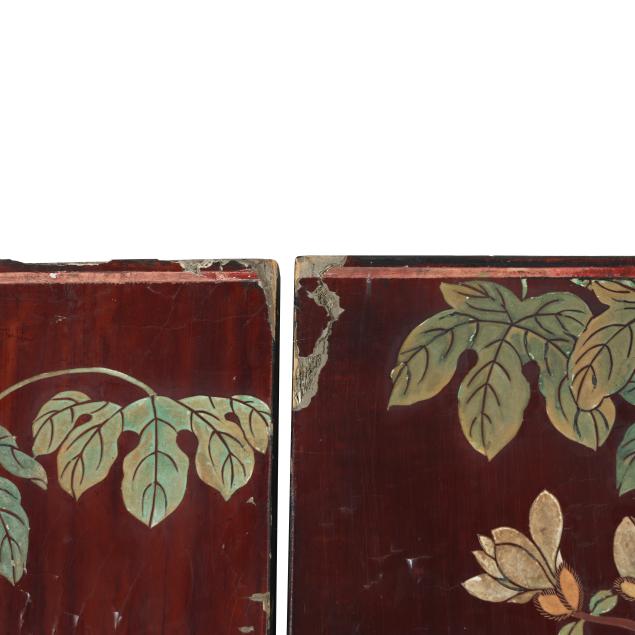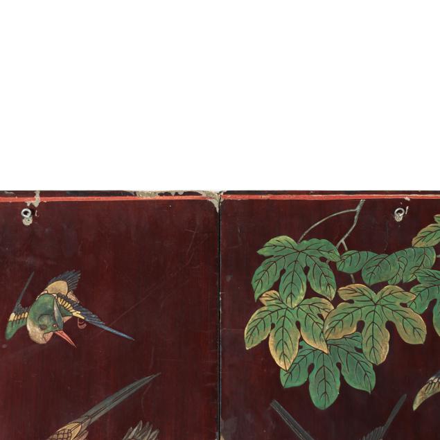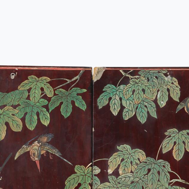 Some nicks and loss to edges of screen and feet; scattered areas of cracking to panels; without hardware and panels presented loose.