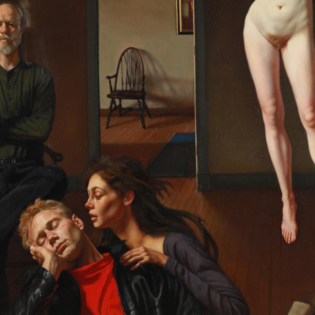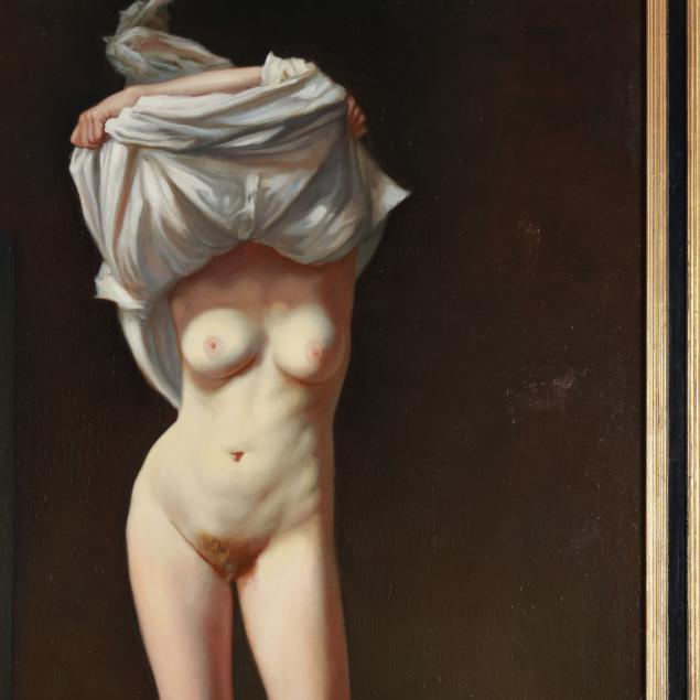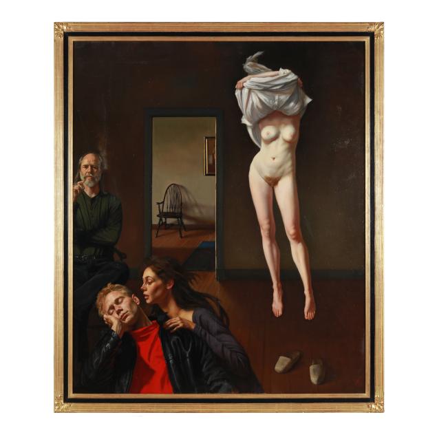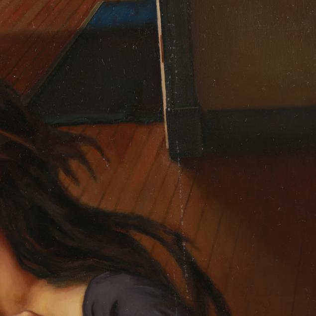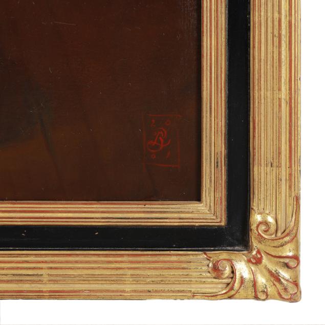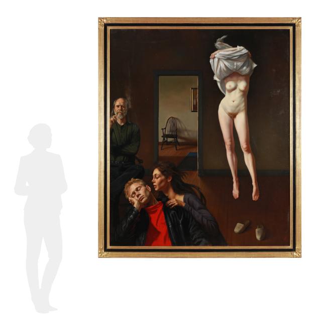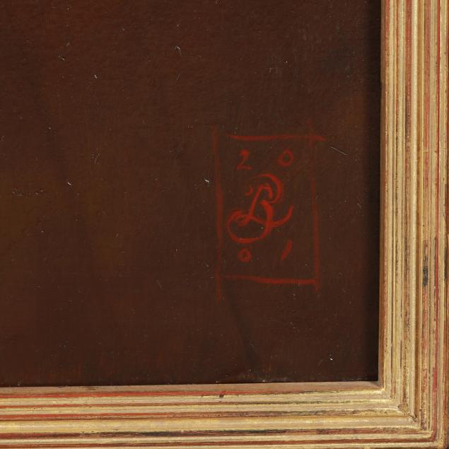 Oil on canvas, 2001, signed with artist's monogram and dated at lower right, retaining museum exhibition label to the verso, presented in a very fine ebonized and gilt frame.