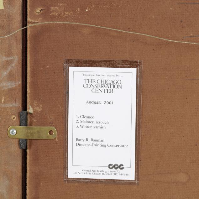 This painting has undergone a professional cleaning, varnish, and retouch; the retouch is minimally visible under UV light; yellowing to the varnish.
