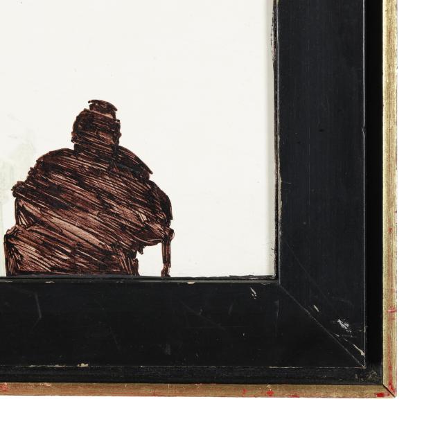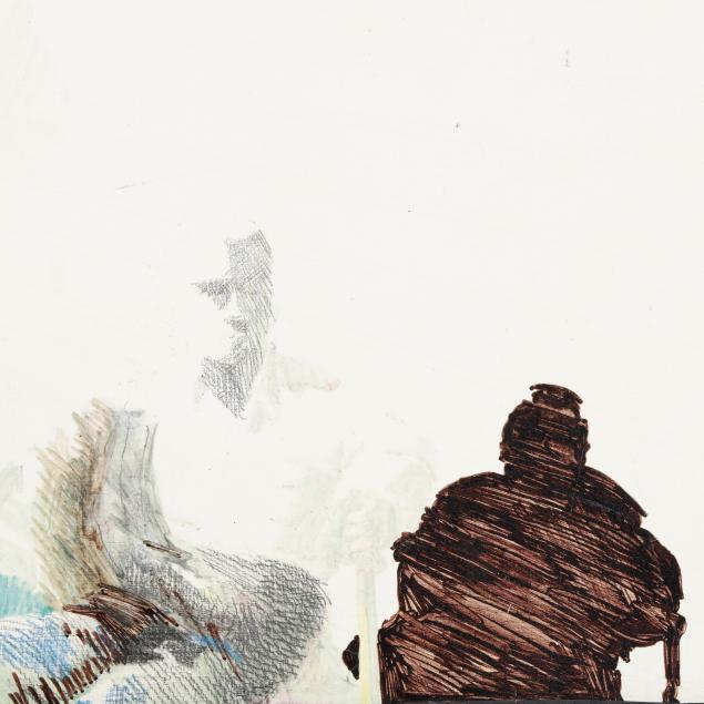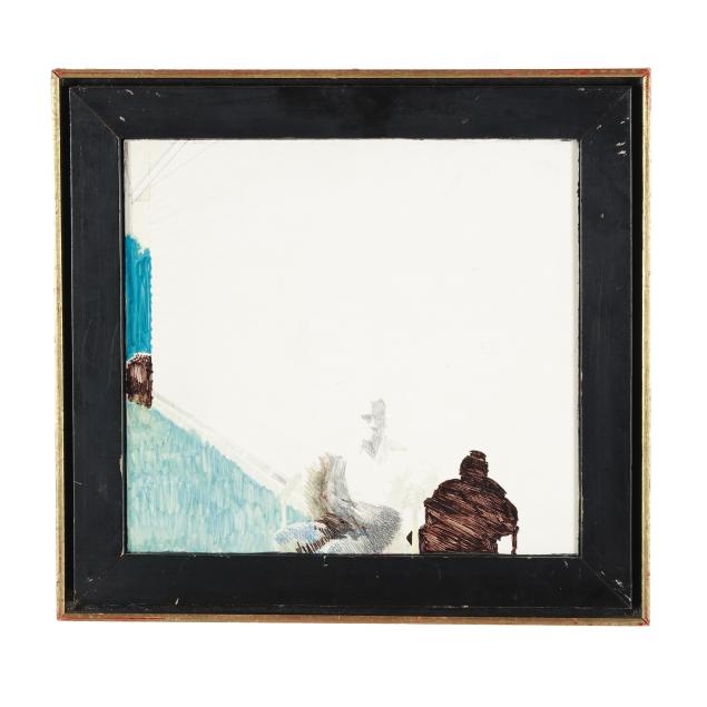 Ink and graphite on panel, signed with artist's initials at lower left, inscribed to the verso, framed.