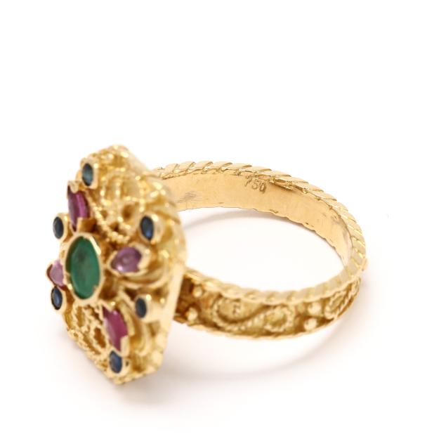 Gold, Emerald, Ruby, and Sapphire Ring