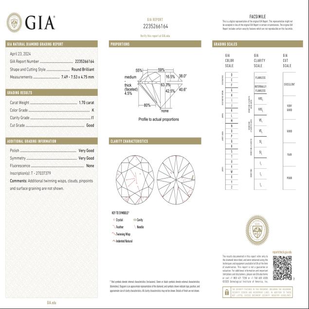 GIA Report number 2235266164 dated April 23, 2024.