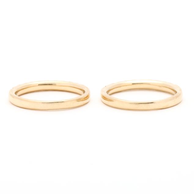 Pair of Gold, Sapphire, and Diamond Bands