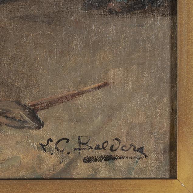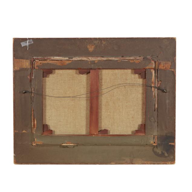 Oil on canvas, signed at lower right, presented in a period gilt composition frame retaining a label for Gimbel Brothers Picture Store to the verso.