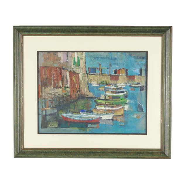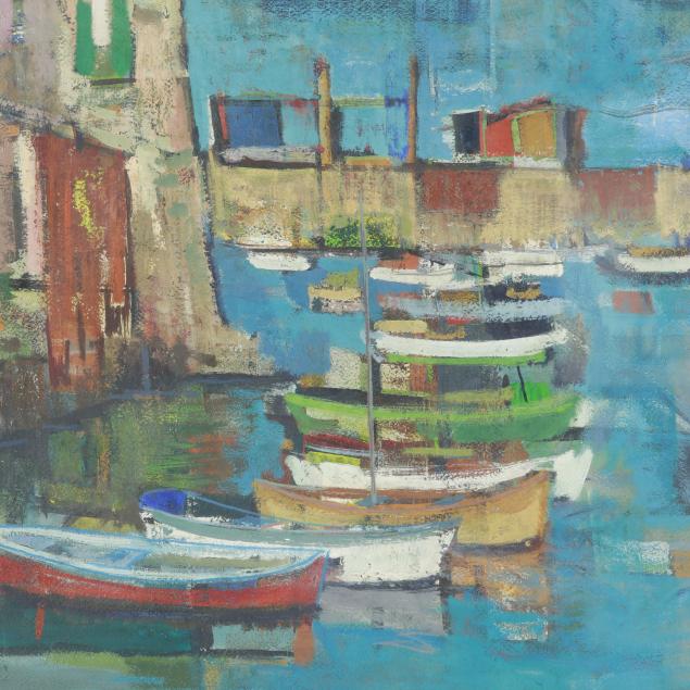 Philip Anthony Moose was a North Carolina painter known for his vibrant landscapes and scenes from his extensive travels. Born in Newton, North Carolina, he received a fellowship to study at the National Academy of Design in New York City in 1940. He served in the U.S. Army in Europe between 1942 and 1945 and became a Pulitzer Prize winner for art in 1948. His travels throughout Europe, South America, Asia, and the Middle East provided rich subject matter for his colorful, atmospheric paintings.