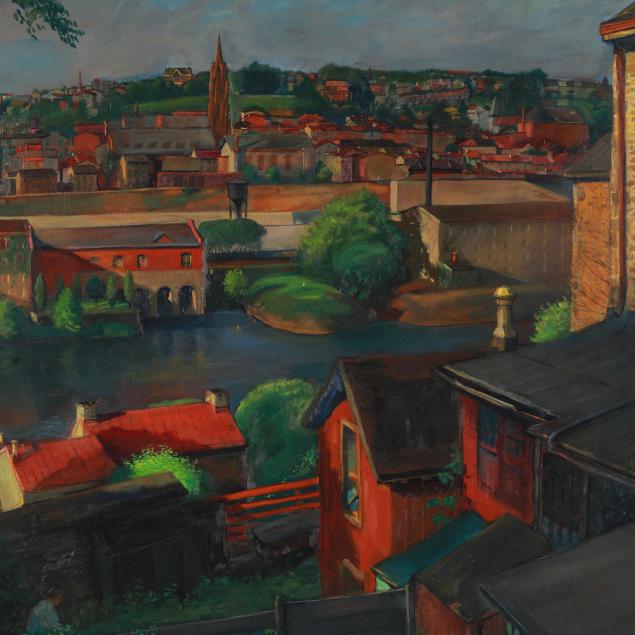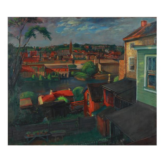 In 1925, Speight graduated from the academy but stayed as a painting and drawing instructor until 1961. This period of his work is characterized by tender scenes of the blue collar industrial towns surrounding Philadelphia. Bathed in dramatic rays of sun, or soft shadows, these paintings and their compositions seem to sway and dance across the canvas.