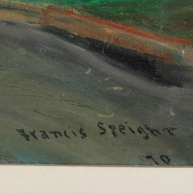 Francis Speight exhibited frequently throughout his lifetime, with solo exhibitions at Butler Institute of American Art, Youngstown, OH; Delgado Museum, New Orleans; Corcoran Gallery of Art, Washington, D.C.; Pennsylvania Academy of Fine, Philadelphia; Greenville Museum of Art, Greenville, NC; North Carolina Museum of Art, Raleigh; and more. His paintings are in numerous prominent private and public collections, including The Mint Museum of Art, Charlotte, NC; Ackland Art Museum, Chapel Hill, NC; Gibbes Museum of Art, Charleston, SC; National Academy of Design, New York; The Johnson Collection, Spartanburg, SC; and many more.