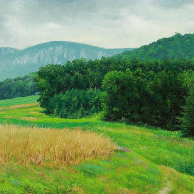 Private Collection, North Carolina Ben Berns was a Dutch-born American painter known for his meticulously rendered realist landscapes. Born in Ginnejen, The Netherlands, Berns moved to North Carolina in the mid-1960s to teach at UNC Greensboro. Self-taught after leaving school at age 14, he began painting at the age of eight. Awarded a Guggenheim Fellowship in 1971, he taught lithography at the Pratt Institute in New York before settling in North Carolina, where he taught at the university from 1970 to 1982. Working on site in the traditional Dutch manner of landscape painting, Berns created sweeping vistas of rolling hills and forests, primarily inspired by the countryside of Stokes County, North Carolina.