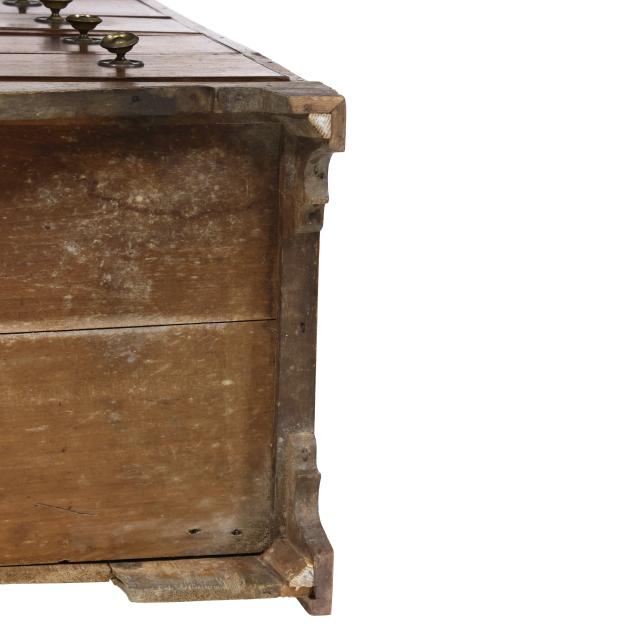 Overall very good estate condition; the top with sun fading and dark staining; later pulls (in original holes); two locks missing.