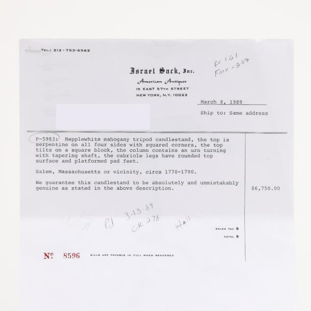 From the Collection of a Lady, Williamsburg, Virginia Accompanied by Illustrated Israel Sack, Inc. documentation, March 8, 1989 (P-5983).