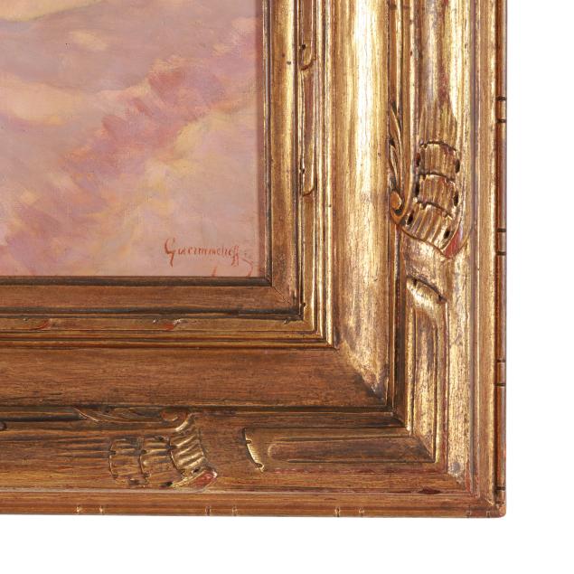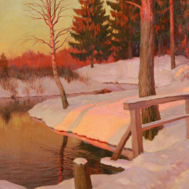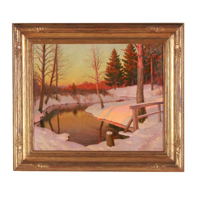 Mikhail Markianovich Germachev was born in Kiev, and studied at the Moscow School of Painting, Sculpture and Architecture, where he came under the influence of prominent Russian Realists including Isaac Levitan and Vasily Polenov. Germachev is known for his sensitive handling of light and mood when depicting quiet villages, forests, snowy roads, and twilight settings. He participated in exhibitions of the Peredvizhniki (Itinerants) and other major artistic societies, contributing to a cultural movement that sought to portray the Russian land with sincerity and emotional depth. Germachev continued to exhibit widely into the early Soviet period, maintaining his style until his death in 1930.