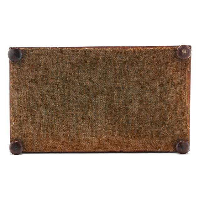 Good estate condition; a few cracks to the interior rim veneers; light spotting to brass; minor areas of loss to interior tea lining.