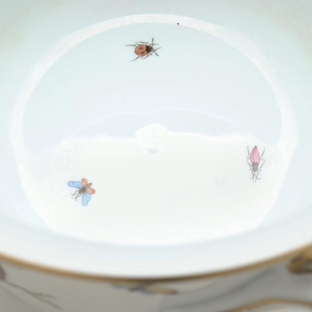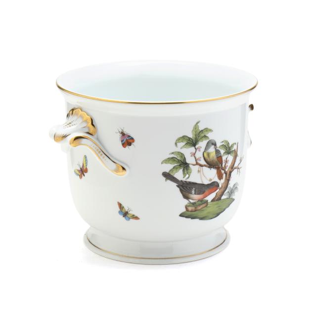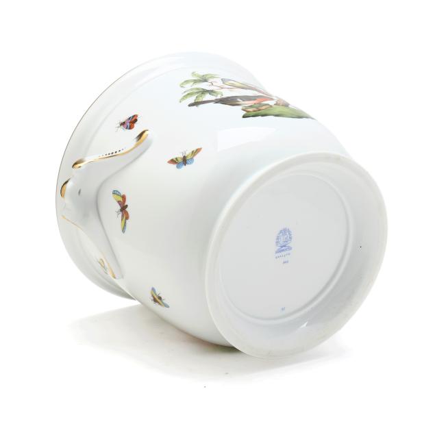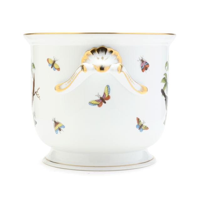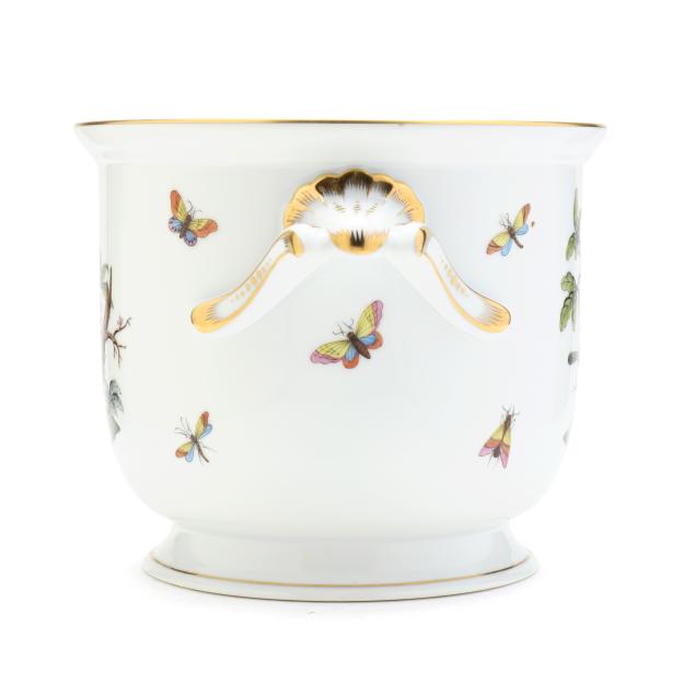 Hungary, hand-painted and gilt porcelain, #2712 cachepot with handles, marked with company backstamp to underside.