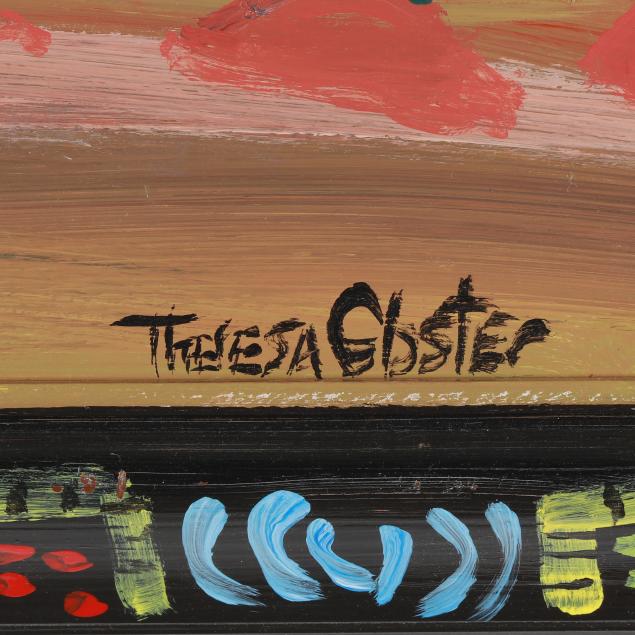 Theresa Gloster is a self-taught folk artist from Caldwell County, North Carolina. Born in a West Virginia mining camp and raised in a large African American family, she creates vivid, story-rich paintings inspired by her childhood, community, and faith. Using paint and found materials, Gloster documents everyday life, resilience, and memory. Her home itself serves as a living artwork, covered in murals and installations. She has exhibited widely and received honors such as the South Arts Folk & Traditional Arts Master Artist Fellowship.