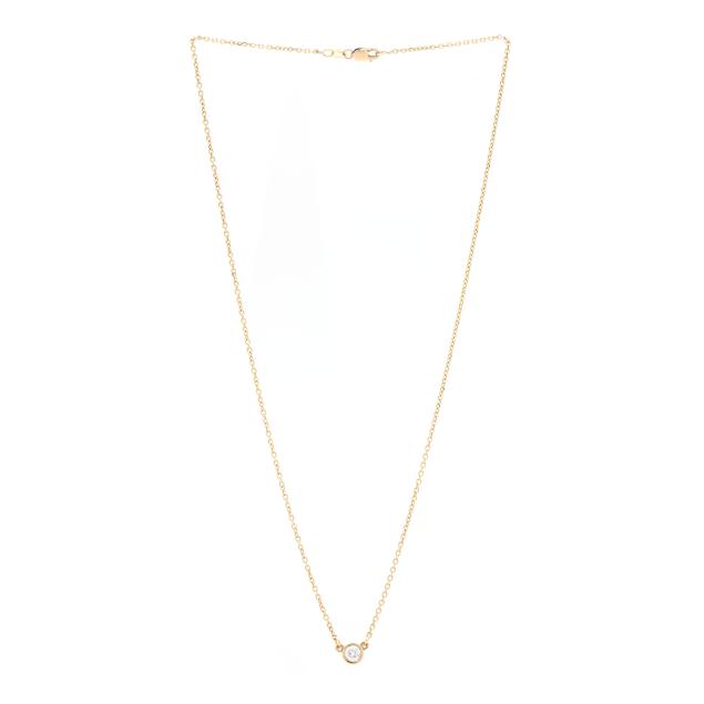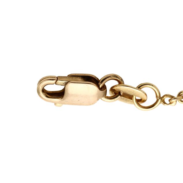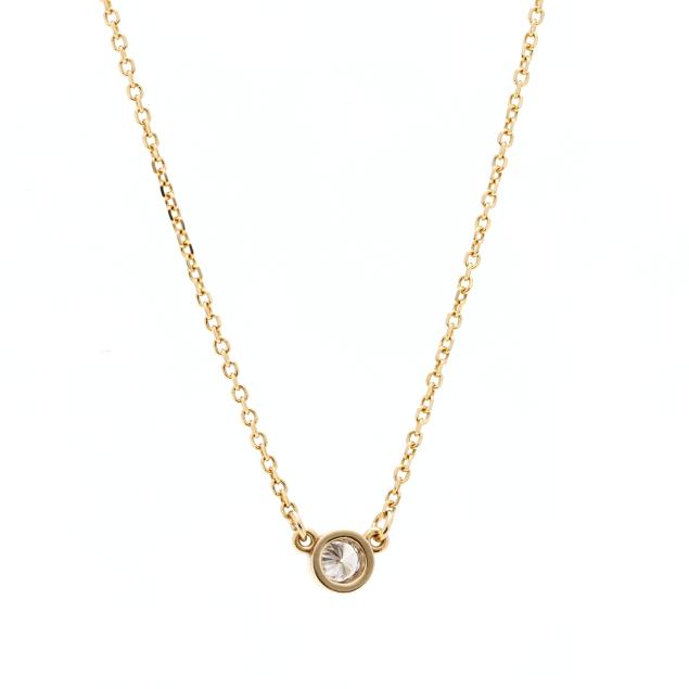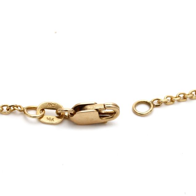 Centered on a bezel set full cut round diamond weighing approximately .28 carat (H color, SI1 clarity) joined to a cable link chain, completed with a lobster clasp, stamped RCI / 14K.