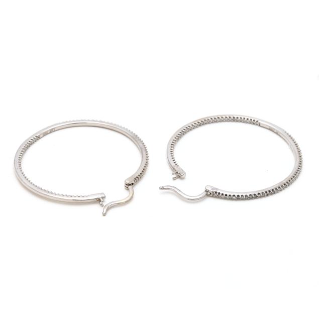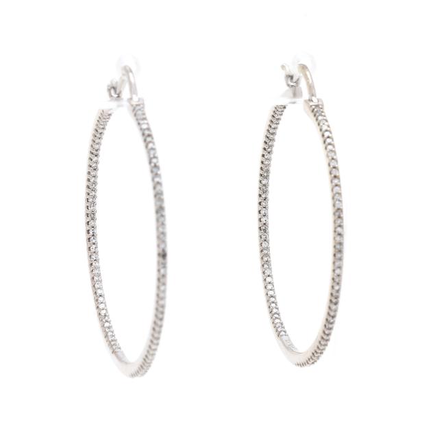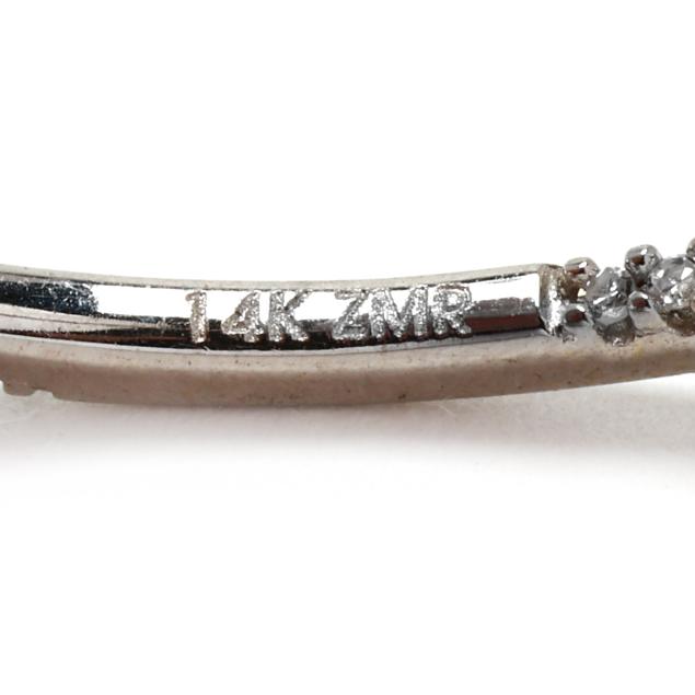 Set to the inside and outside with single cut round diamonds weighing approximately .50 total carat (G-H color, VS2-SI1 clarity), completed with hinged posts, stamped 14K ZMR.
