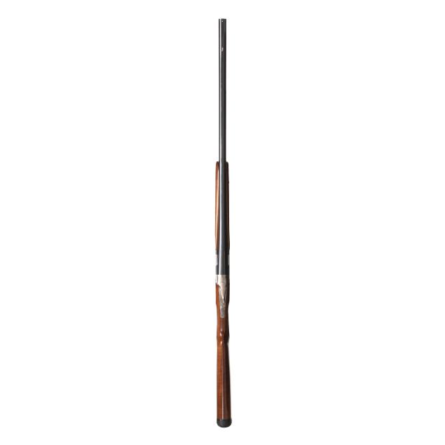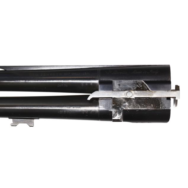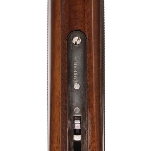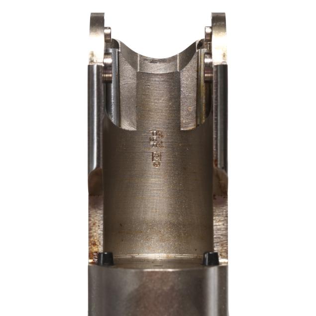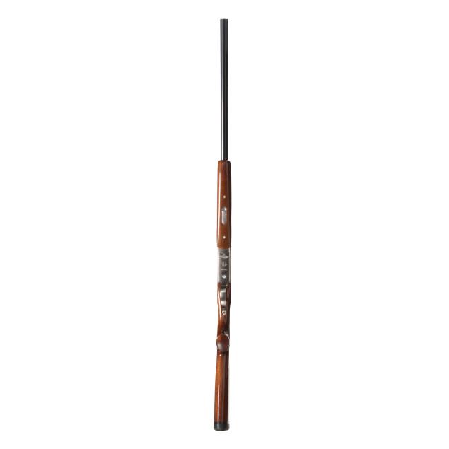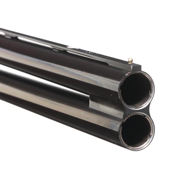 Overall excellent estate condition, blued surfaces are dark and clean, bores are bright and shiny, engraving is crisp and unworn, high gloss finish intact with only slight and shallow field marks, checkering throughout is dry and sharp.