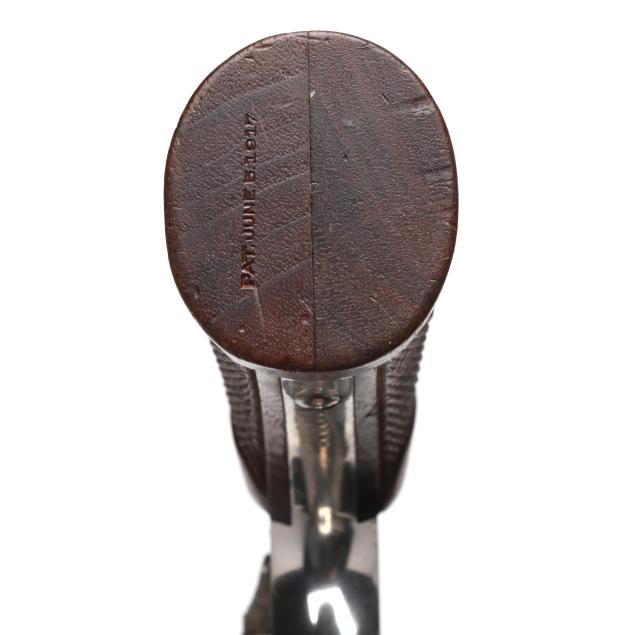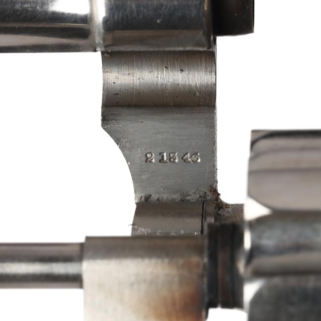 Overall very good estate condition, faint handling marks throughout nickel plated surfaces, mechanical operation is somewhat tight indicating need for cleaning and lubrication, no end shake present, no discernible screw slot damage, checkering remains clean and sharp.