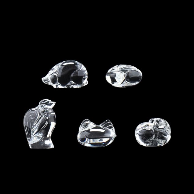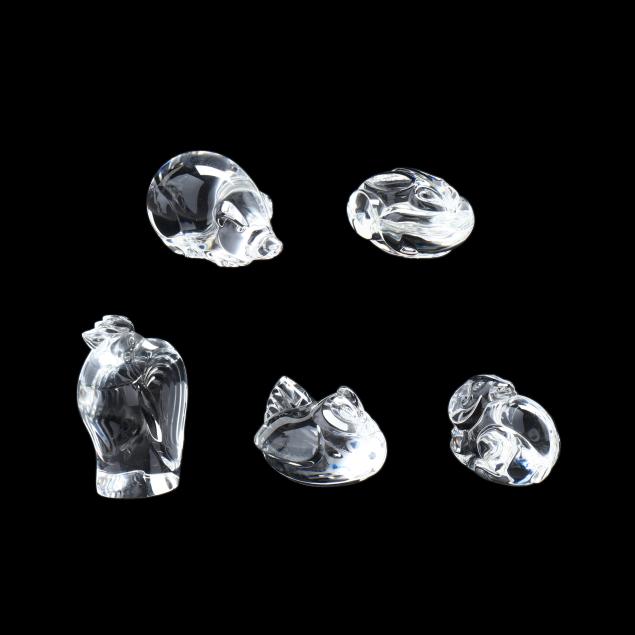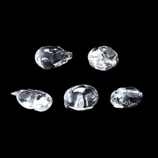 Five Steuben Crystal Barnyard Animal Themed Hand Coolers