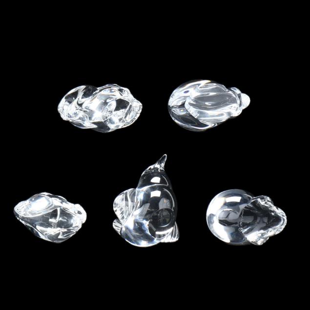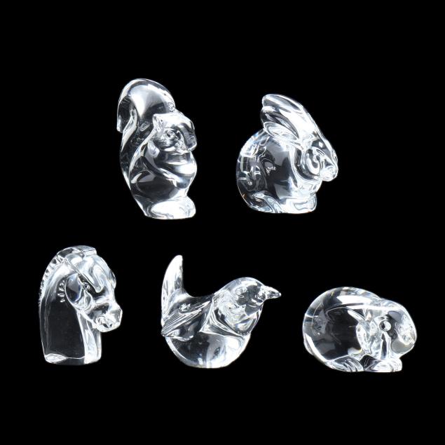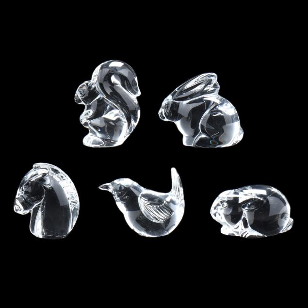New York, late 20th century, including a rabbit hand cooler, horse head, squirrel, song bird, and a rabbit with pronounced ears, signed.