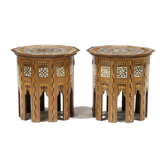 Note these are a true pair in the sense that the inlays are reversed from each other, using the positive and negative mother of pearls / tortoiseshell inlays for each table.