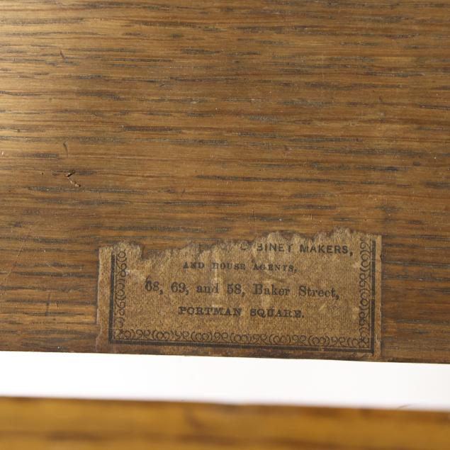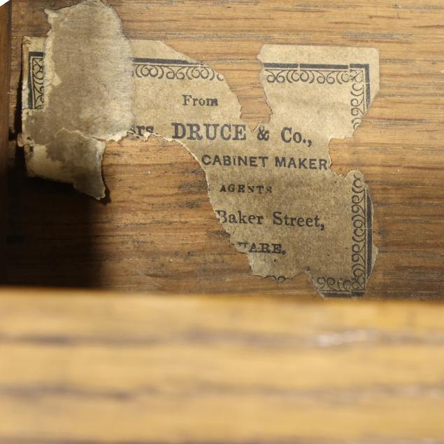 Private Collection, Mooresville, North Carolina Retains remnant of a Druce & Co., London paper label to interior central drawer.