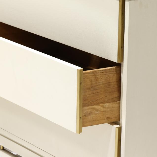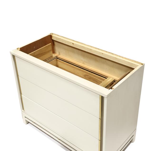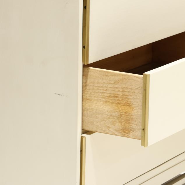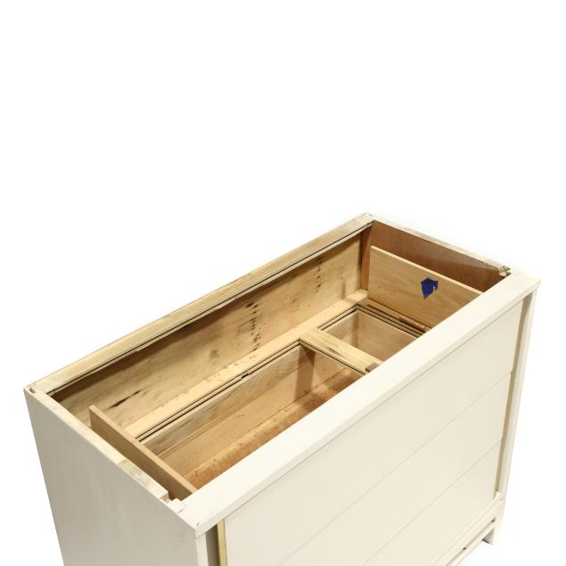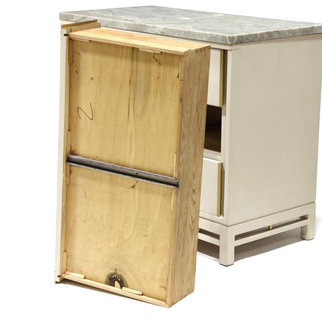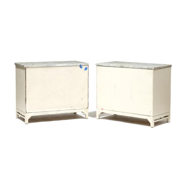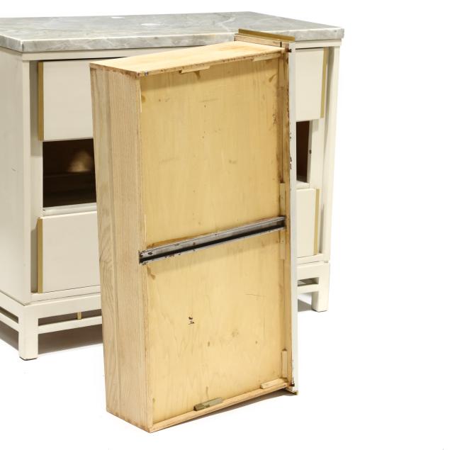 Private Collection, Mooresville, North Carolina Later paint and marble tops; lacking sink, plumbing and sinks; upper drawers have been affixed to accommodate plumbing.