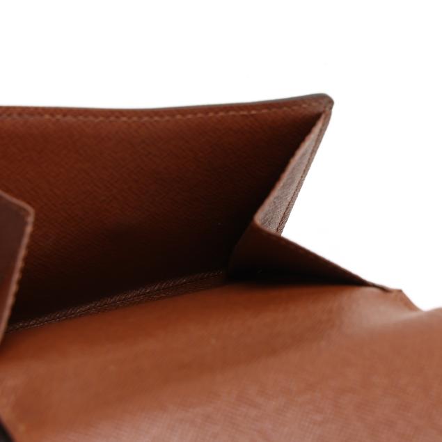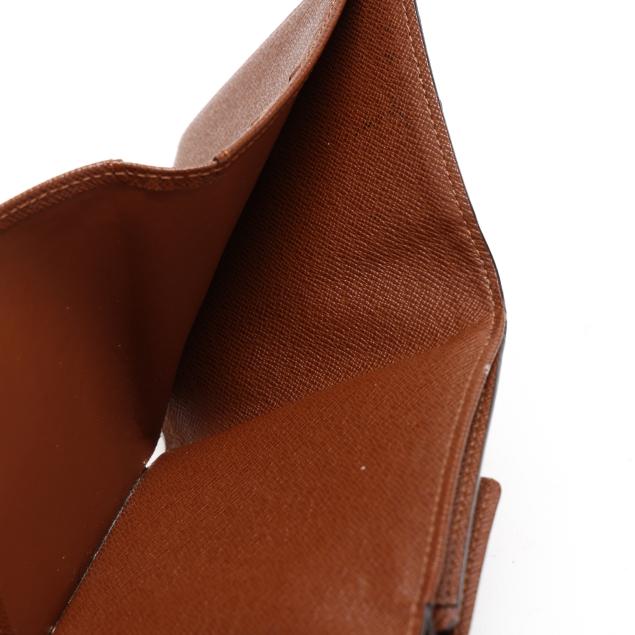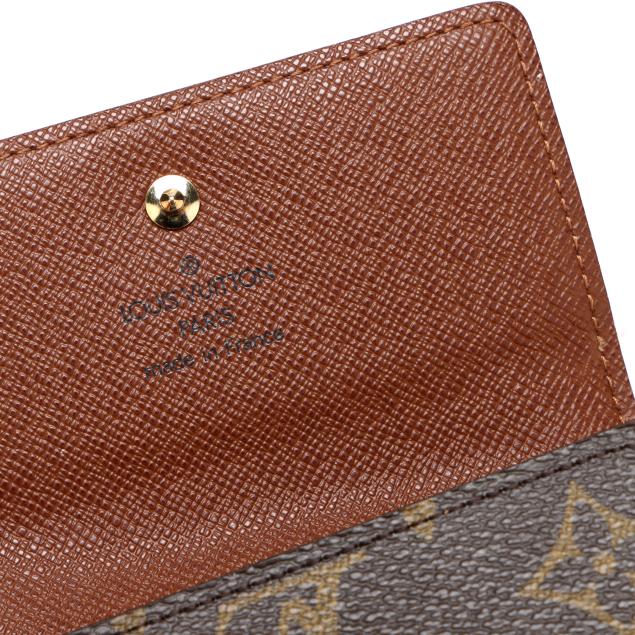 The exterior in classic monogram canvas with one pouch with flap, and flap over bi-fold, the interior with cash slot, (4) card slots, and (2) medium slots, signed and marked made in France.