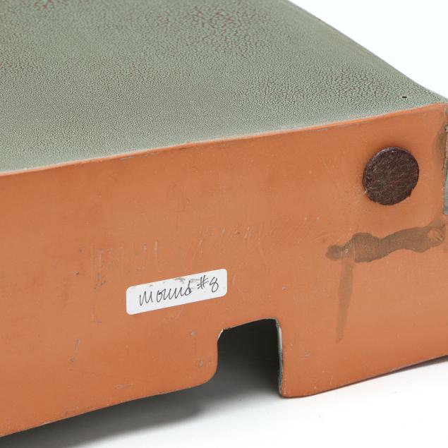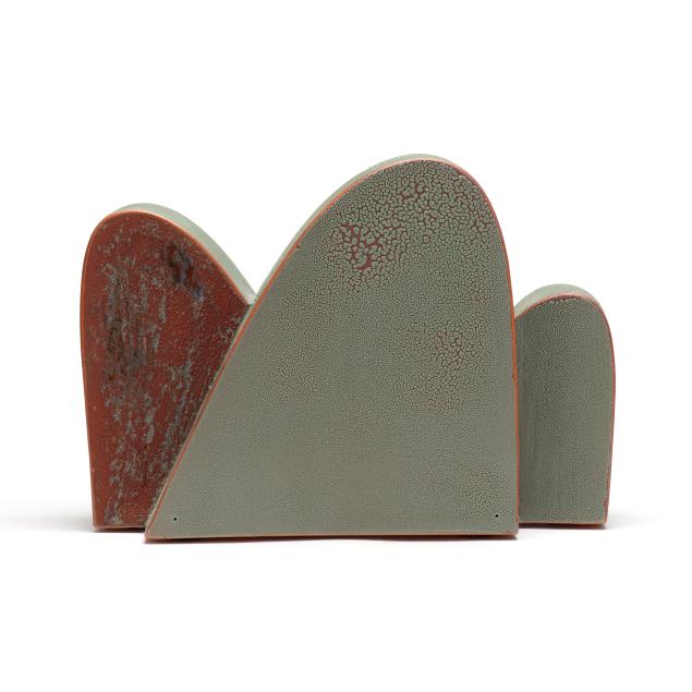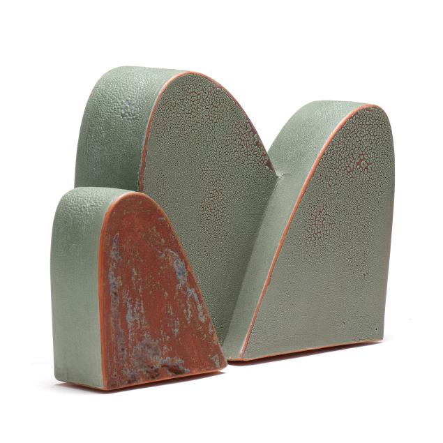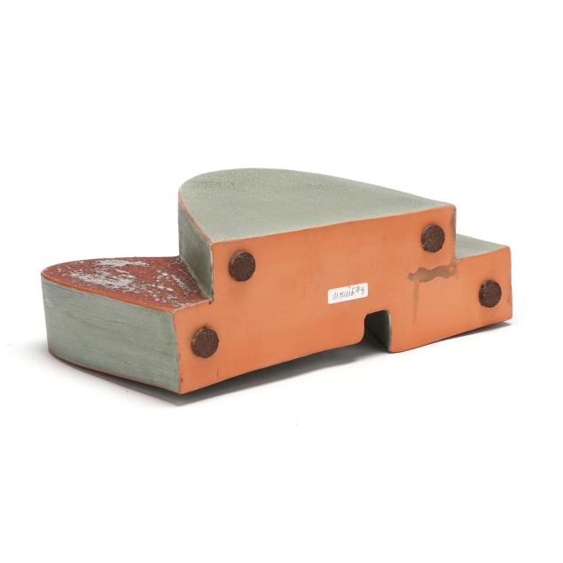 Slab constructed terracotta, glazed and low-fired in oxidation, signed and titled to underside.
