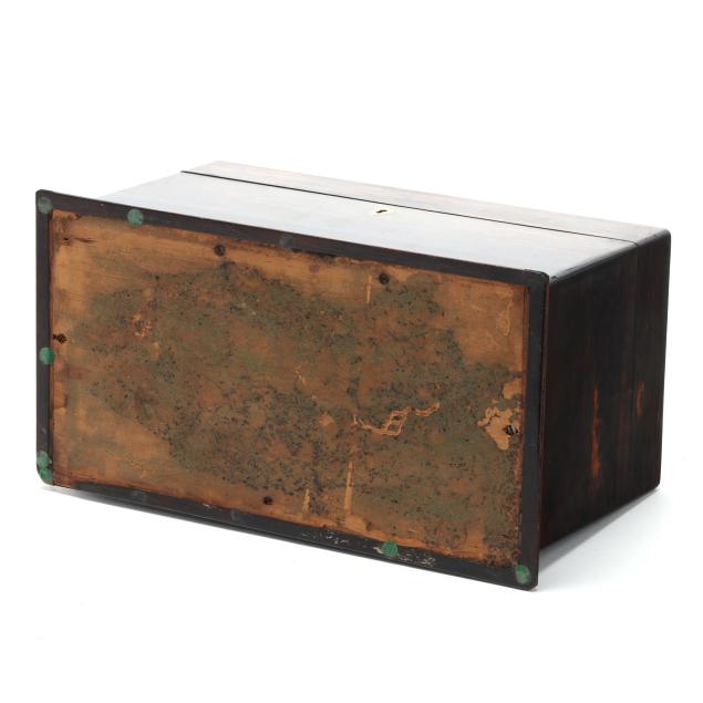 From the Estate of the late Jean and Lawrence Shuping, Raleigh, North Carolina Some chipping to base molding; some light scratches to veneers; tin lining with some areas of loss.
